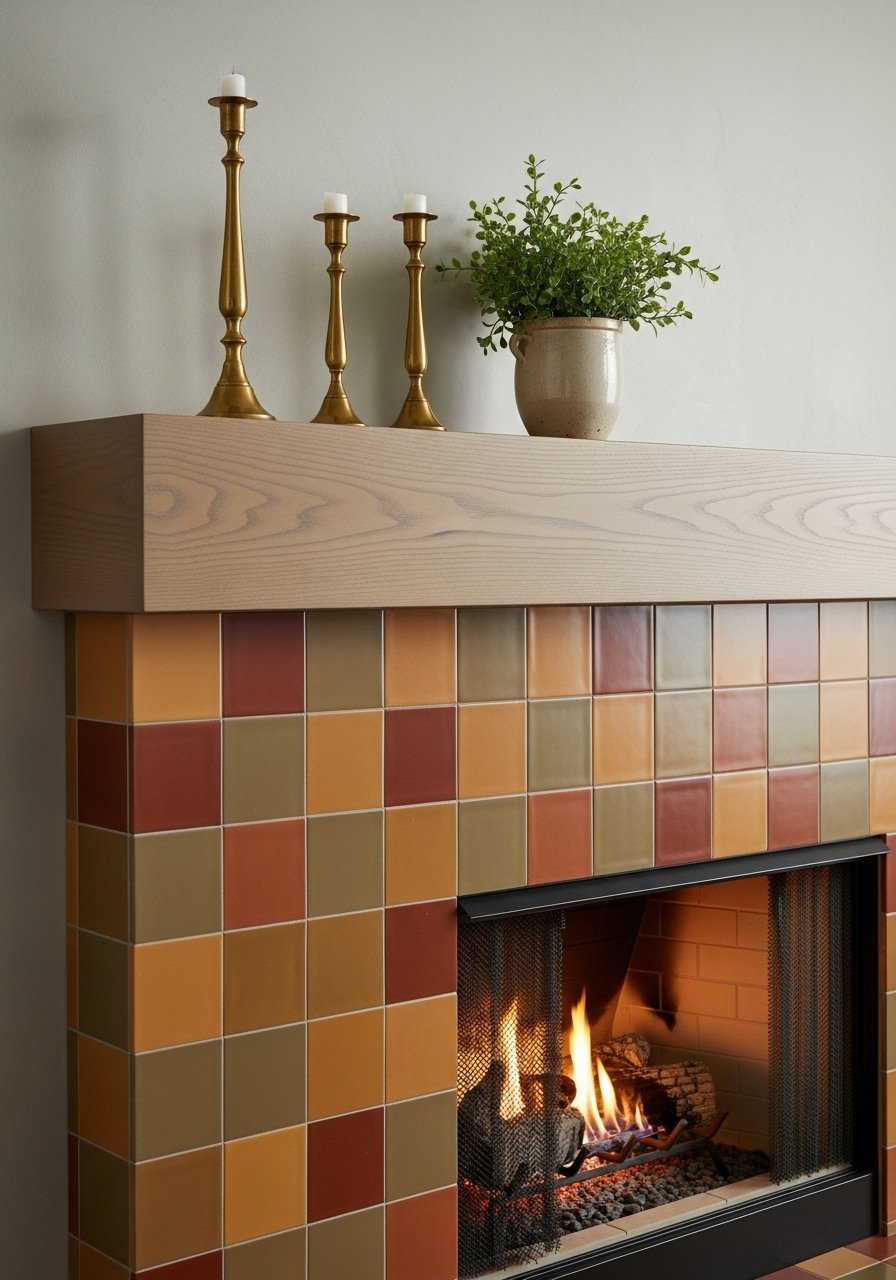 Saturated Accent Fireplace With Neutral Mantel Styling