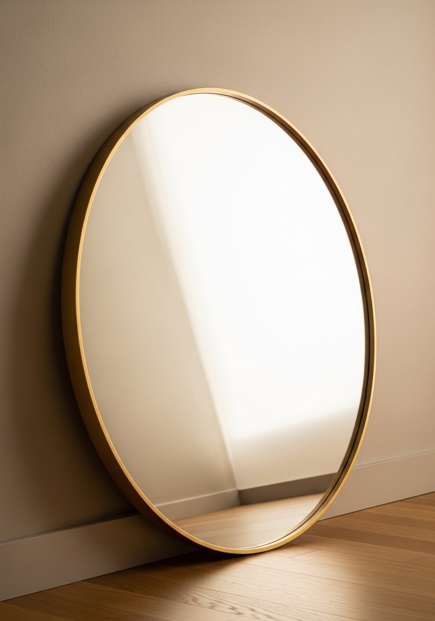 I leaned a 36-inch round mirror in matte gold against the wall. It doubled the light from the window and visually expanded the space. Place it opposite a window or light source. Mistake: hanging too high—keep the center of the mirror at eye level.