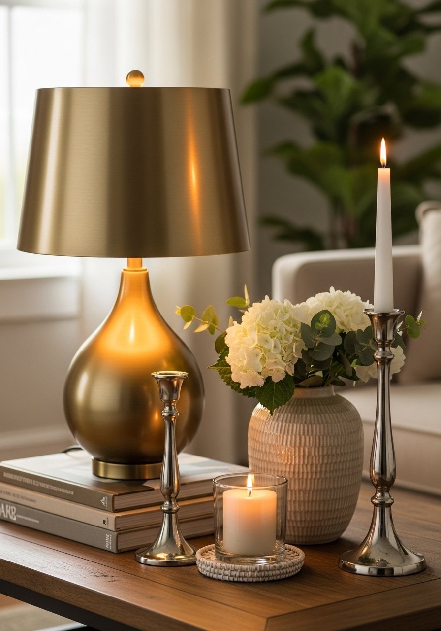 I mix warm gold with brushed nickel—keeps things current without feeling matchy. I used a matte gold floor lamp and nickel-framed photo frames. Pro tip: choose one dominant metal (I pick gold) and a secondary cool metal for contrast. Avoid a jumble of finishes; limit to two.