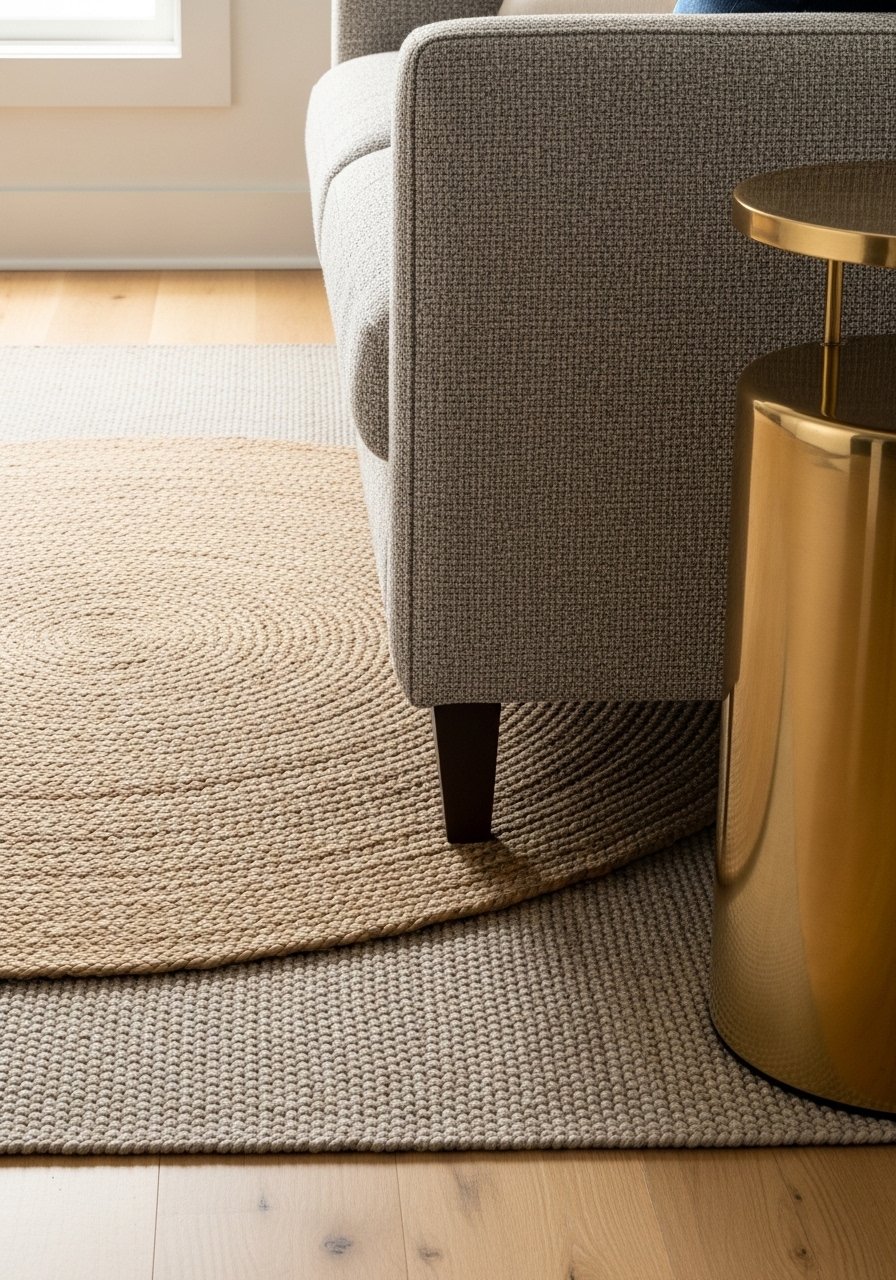 I layered a round jute rug over a flatweave to add depth. The mix of natural fiber and a soft wool rug keeps things grounded. Rule: front legs of seating on the top rug to anchor the set. Common mistake: choosing too thin a rug—use a pad to prevent slipping.