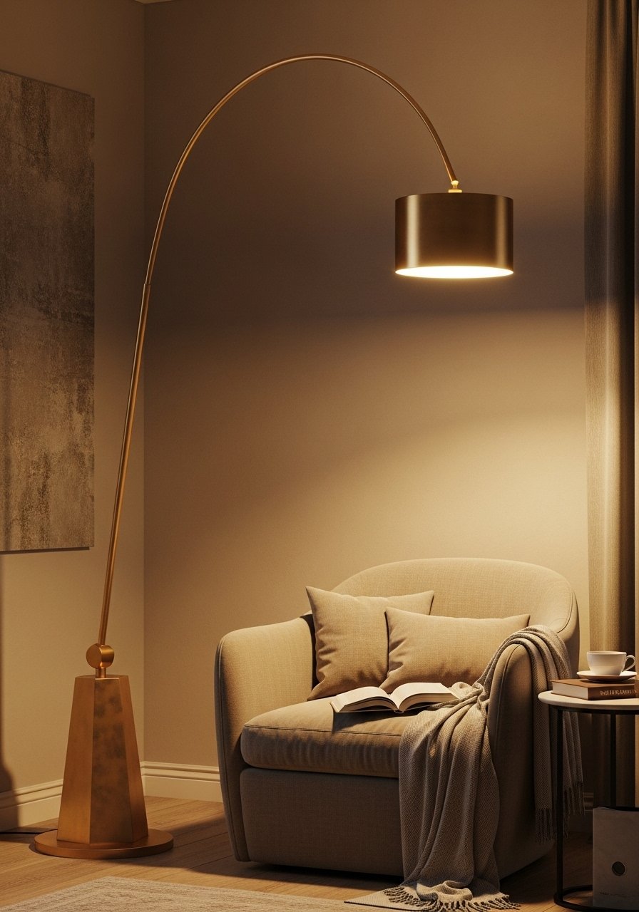 A statement lamp can act like art. I chose a matte gold arched floor lamp with warm LED bulbs. It draws the eye up and creates a cozy reading pool. Avoid overly ornate fixtures that compete with subtle neutrals.
