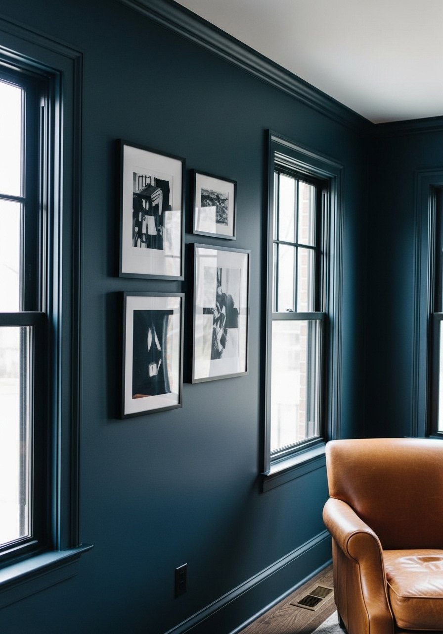 Matte Black Trim With A Navy Accent Wall (Modern Industrial)