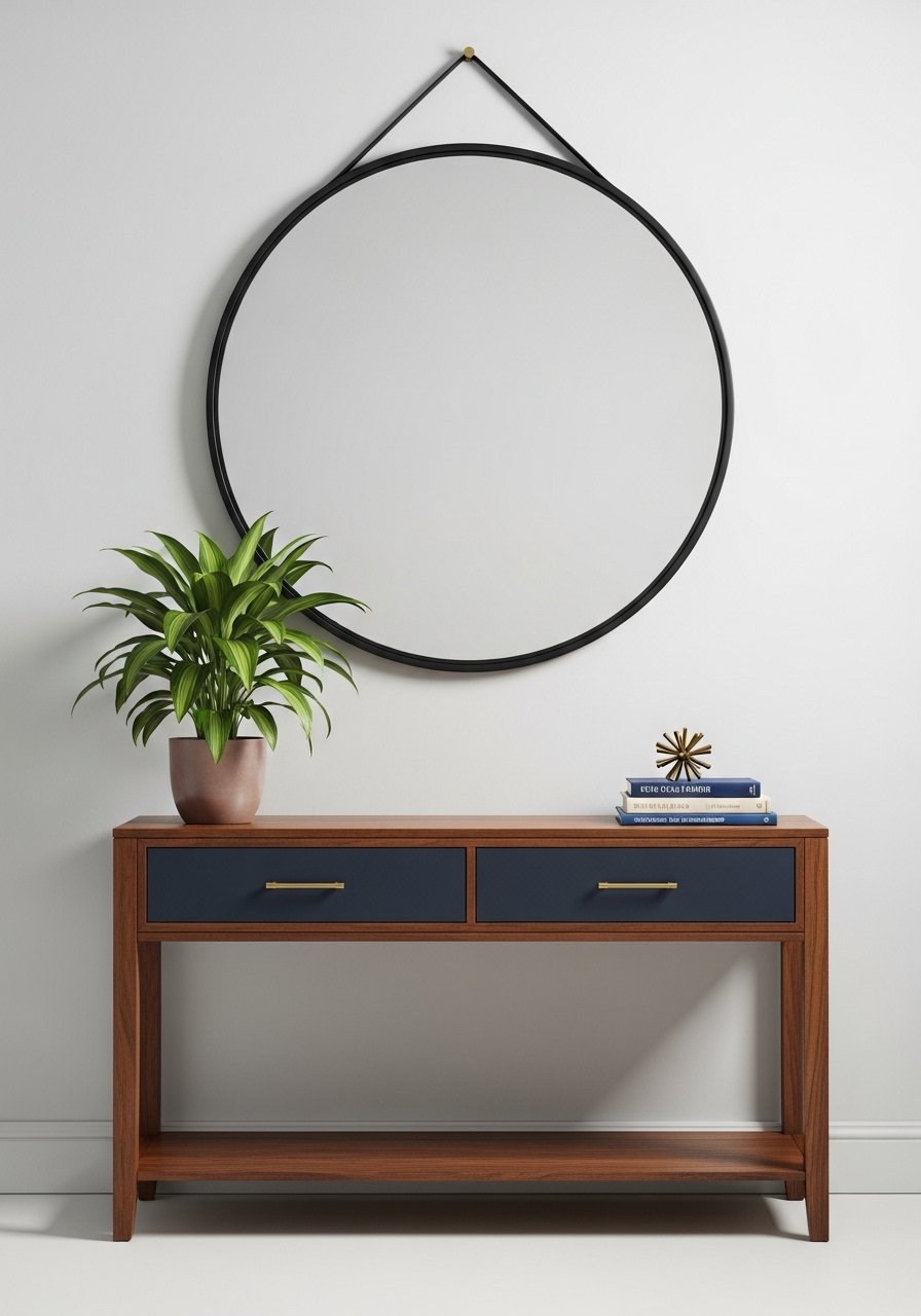 A 36-inch black mirror reflected light into my navy corner and made it feel twice as large. Place it opposite a window for instant brightness. Avoid mirrors that are too ornate for a modern navy scheme; keep the lines clean.