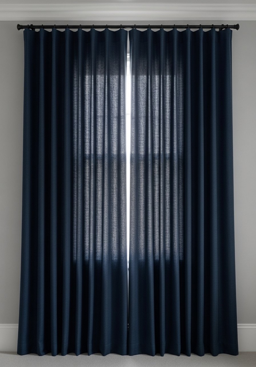 Hanging navy linen curtains 96-inch from a black rod close to the ceiling adds height. The key is letting fabric kiss or puddle the floor. Mistake: too-short panels—measure twice. This instantly elevates a standard-living room to something intentional.